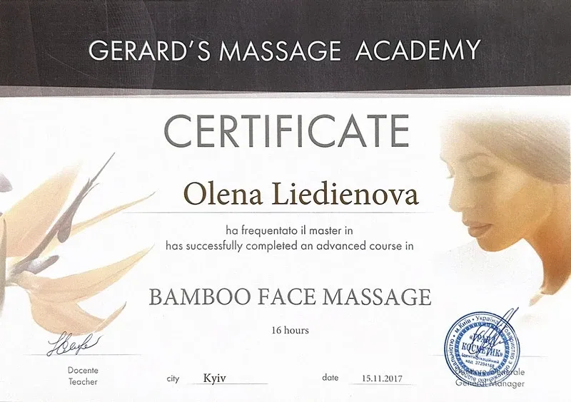 Bamboo Face Massage - Olena Liedienova - Certificate
