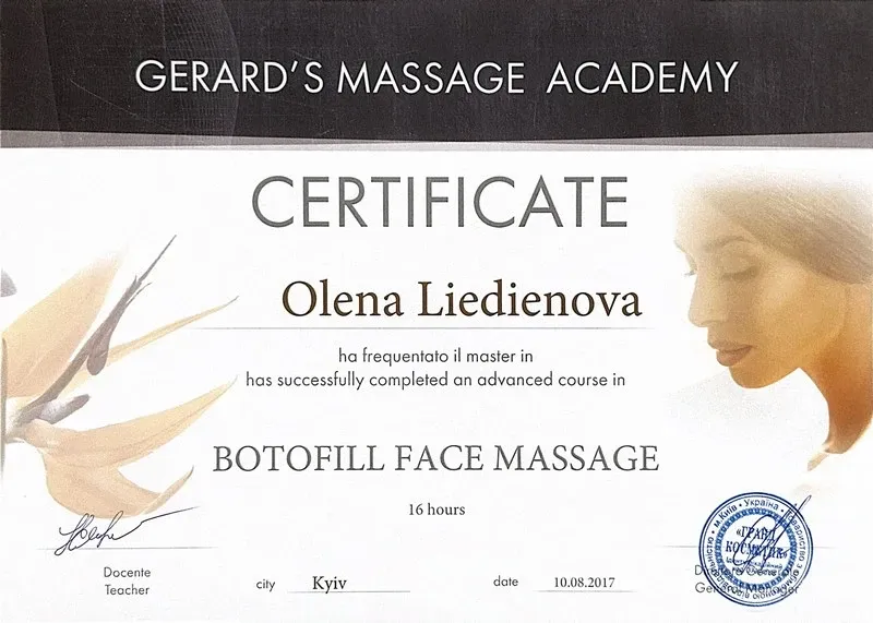 Botofill Face Massage - Olena Liedienova - Certificate