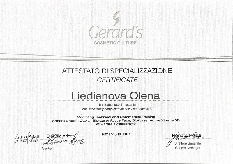 Olena Liedienova - Certificate